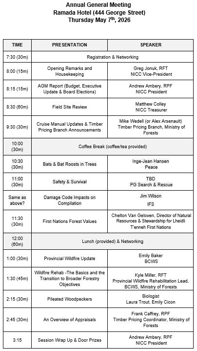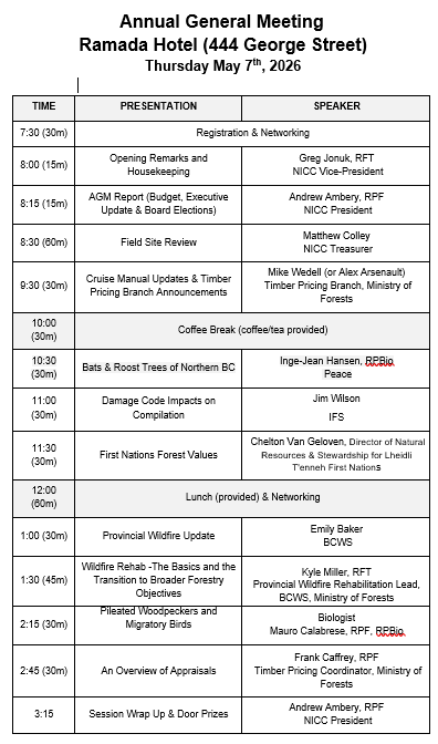 This year’s Northern Interior Cruising Committee (NICC) event will be taking place on Wednesday May 6th and Thursday May 7th, 2026 in Prince George.